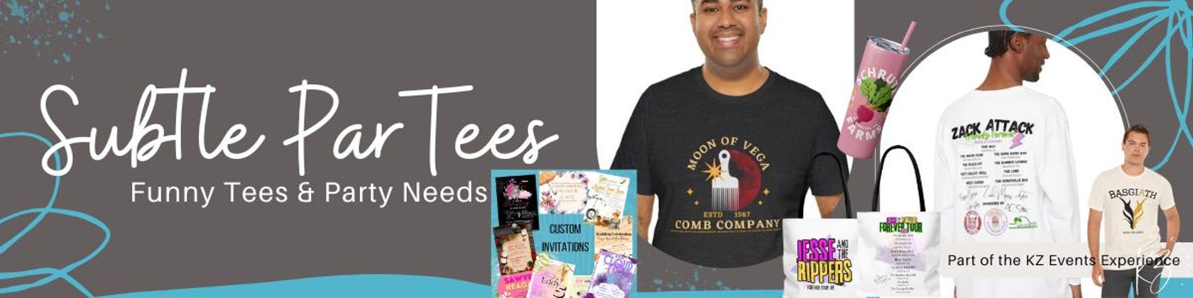 Introducing SubtleParTees - your one-stop shop for hilarious shirts, delightful favors, and unique digital items designed for parties and gifts!