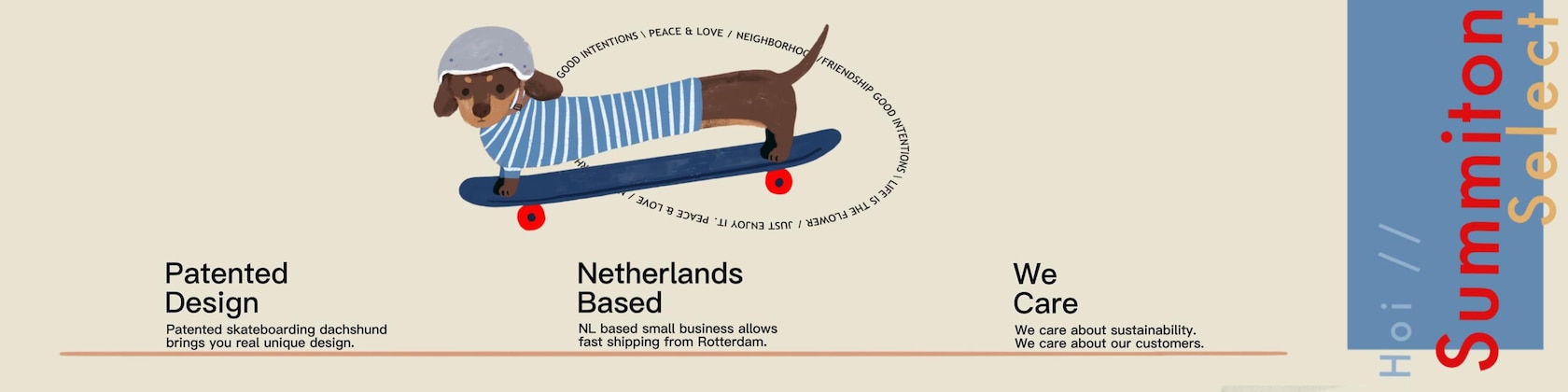 SummitonHome was born out of an unexpected career turn. After earning a PhD, I spent a year working at the Research & Development department at a leading FMCG company, only to face an industry downturn and sudden unemployment. Despite months of searching, I struggled to find the right opportunity. After a six-month gap period, I decided to take matters into my own hands, transforming the happiness and inspiration I found in the skateboarding dachshund into a brand that others could enjoy too.