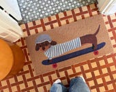Designen på "Skateboarding Dachshund" är skapad för att skapa glada och lekfulla stunder i vardagen.