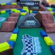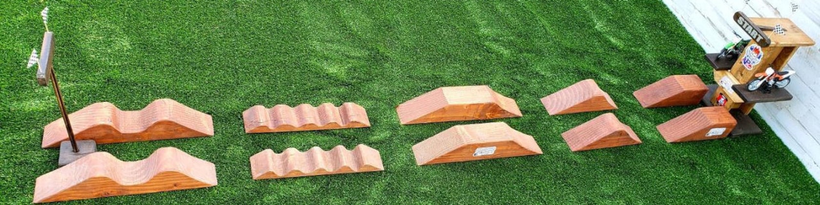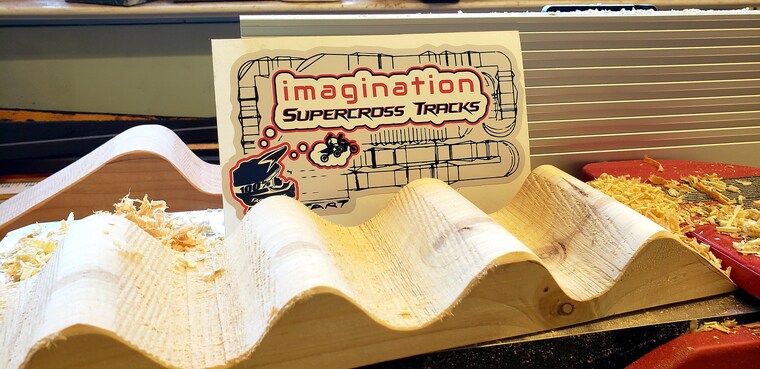 As a kid I always loved playing matchbox cars and hot wheels and making my own racetracks to race around. I played with them hours on end. So, with my 2 youngest racing dirt bikes and always being at the tracks. Between motos they would make mini dirt bike tracks in the dirt for their little play dirt bikes. So, I got to thinking, I do woodworking for a living, there's got to be a way to make jumps and tracks out of wood. So not long after I was getting the idea of making toy wooden Supercross tracks my son's motocross trainer Hudson from FCA motocross wrote me and wanted to know if I could make his little boy a play Supercross track, and I said sure I can! So that's how it all started. I started putting my imagination together and my skill and love for woodworking and came up with Imagination Supercross Tracks. My kids love the tracks and play with our demos all the time. The best thing is they spend less time on tablets and watching tv and get to build their mind and building skills to create some awesome tracks! These tracks are also great for taking to the track or just anywhere you go as there easy to carry around. All the pieces will all fit nicely in a bin. All our tracks are made of solid wood so they will last for generations to come. We have full tracks to purchase, or you can buy separate pieces and build or add on to an existing track. So, open up your Imagination, build an awesome track and get ready to race!!