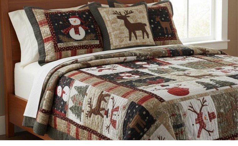 "High-Quality Holiday Quilts are HERE! Add a touch of rustic charm with our Snowman and Reindeer bedding. -