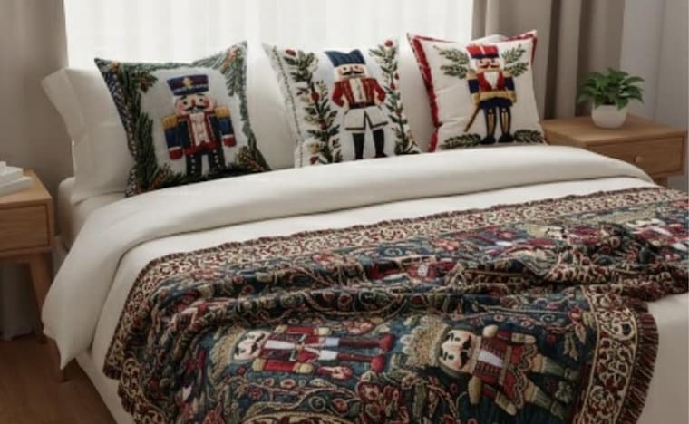 "Bring Home the Magic of the Holidays! ✨ Our luxury Nutcracker throw and pillow set. -
