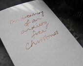 I am not able to personalise cards due to the nature of how my cards are made. Each design has a metal die-cast for printing and can be expensive for a one-off card print. Unlike other foil printing using a digital print and foil laminator, mine is a traditional method of printing.