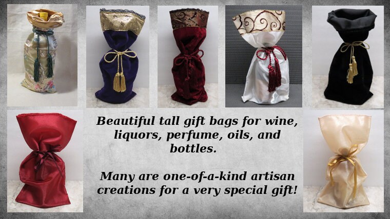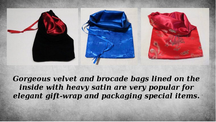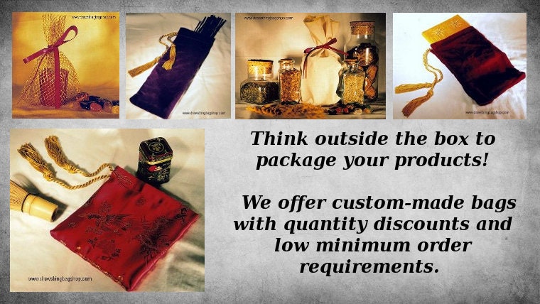 So we did our research and found out that almost all the fabric gift bags we found came from Asia and you can't order wholesale without buying thousands of them. We also discovered that the fabrics used in those bags are very flimsy and cheap, while the materials that we used for costuming was vastly superior in quality and aesthetics. No wonder people were excited to find us!