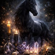 Step into a dark feminine world of mystical horses and enchanted cats, where spiritual witchcraft, arcane magic, and transformative rituals empower your everyday life.
