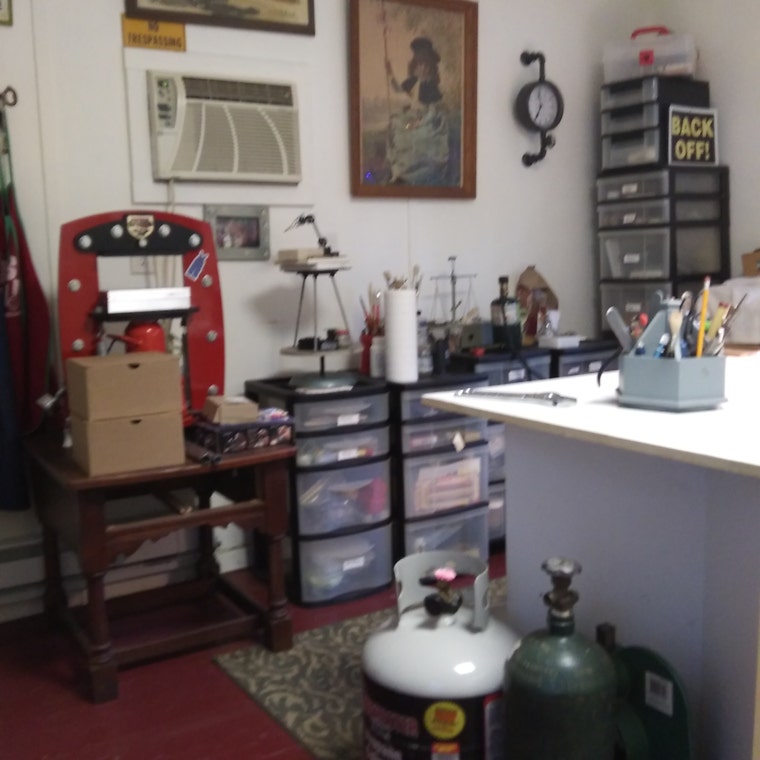 My little studio out back of my house. It was a 100 year old Summer kitchen that my brother and I gutted and rebuilt. -