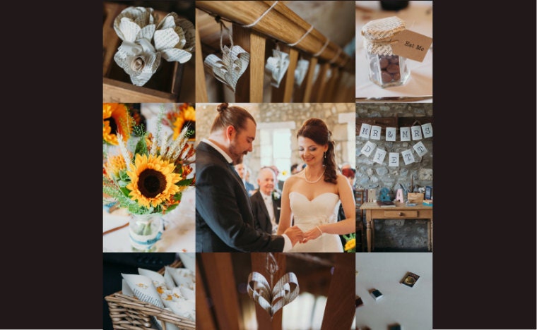 Before our wedding I was struggling to find the right coloured vintage books for the table centre pieces for the wedding. So, on a whim, I bid on and won a joblot of books from eBay. Suddenly I was the owner of over 1100 amazing hardback cloth bound books...in my living room...which is not big...oh dear...but it’s okay, I had a plan! Fortunately I found just the right coloured books for the wedding table centre pieces amongst these books, but in the joblot of books there were some damaged ones. I hate the idea of destroying a beautiful book so I used these damaged ones for all the wedding decorations, giving them a second lease of life. I made all sorts from bookpage roses, flowers, printed letter and picture bunting, table place settings and paper heart garlands. I loved it! Making something from scratch was a lot of fun.