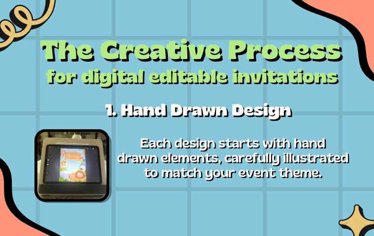 Every design starts with hand-drawn elements created on iPad for a unique look. -