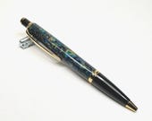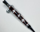 ¿Qué es un bolígrafo de arcilla polimérica? Bueno, empiezo con un kit de bolígrafo (hardware para bolígrafo) y elaboro cuidadosamente bastones de arcilla polimérica en una variedad de colores, formas y patrones. A continuación, cubro el tubo de latón del kit de bolígrafo con rodajas del bastón y lo curo en el horno. El resultado es una pieza en bruto de bolígrafo de arcilla polimérica, lista para el torno para lijarla según las especificaciones de diseño de los bujes del kit. Una vez que la saco del torno, inspecciono cuidadosamente la pieza en bruto para asegurarme de que no tenga defectos. A partir de ahí, vuelvo al torno para el acabado de la superficie. Esto implica pasar la pieza en bruto de arcilla polimérica por una serie de almohadillas de pulido de micromalla fina para suavizar y eliminar los rayones de la superficie. Una vez que estoy satisfecho, comienzo el proceso de acabado de cianoacrilato (CA) comenzando con 5 o más capas de CA fino seguidas de 3 o más capas de CA medio. Este proceso sella la pieza en bruto y comienza el proceso final del torno de pulido de micromalla, creando un brillo similar al del vidrio. Luego tomo la pieza de arcilla polimérica terminada para el proceso de ensamblaje final. Ensamblo el resto del hardware del kit de bolígrafo en la pieza de arcilla polimérica y lo inspecciono para ver si tiene imperfecciones. El resultado final: un bolígrafo de arcilla polimérica único, hermoso y artesanal para ti.