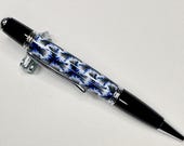 The translucent clays create an illusion of depth, causing the designs to appear to float! How? I begin with a small log of translucent clay, then wrap it with layers of black & white clays, then add another layer of translucent...repeat layering until I’m satisfied with the basic log. I combine multiple pieces of log variations to make the cane design. Next, I reduce the thickness of the cane by squeezing/rolling it until I reach desired thickness. I let the cane rest in the refrigerator until chilled, then cut slices that I apply to the brass pen tube. Bake it for 30 minutes to harden the clay. I now have a polymer clay pen blank ready to be made into a pen.