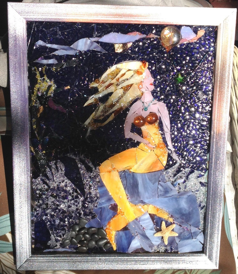 Estaremos encantados de crear un diseño personalizado para usted. Tú eliges tus colores, tema y tamaño. En función de sus deseos, le enviaremos por correo electrónico un boceto gratuito para su aprobación / cambios antes de comenzar el trabajo en vidrio. No se requiere depósito a menos que su diseño solicitado sea muy personal (como un monograma) o tan extraño que no podríamos venderlo a otro comprador. Hemos creado imágenes de cervezas, vinos, animales, aves, así como criaturas marinas, submarinos y sirenas. Nuestro trabajo abarca desde una dimensión mínima de 5" hasta una dimensión máxima de hasta 30". Le sugerimos que revise nuestra biblioteca de creaciones para obtener algunas ideas. ¡Las posibilidades son increíbles y todo se ve mejor en vidrieras brillantes y vívidas! La finalización varía de 3 días a 1 mes