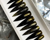 5 out of 5 starsAbsolutely beautiful design and arrived fast. Most importantly is the quality. The nails are not weak, don't break, and the glue holds. After trying many different shops and having nails fall off or chip or break, this is my go to shop!!