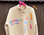 5 out of 5 starsI am so excited to wear this cozy piece. My daughter who is 4 already loves it and thinks it’s so cute and fun for me to wear. I am a preschool teacher and I can’t wait to wear it for my students. I Love that it’s all thrifted and from a teacher❤️. Simply beautiful and meaningful.