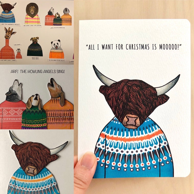 Christmas Card production from illustrations, layout to finished product. -