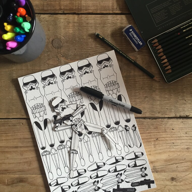 Creating multiples of the same portrait by hand! So many stormtroopers! -