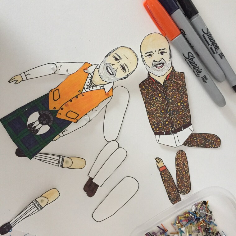 Assembling the paperdolls before it gets mounted and then framed.
