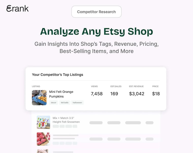 Get started for free and unlock powerful tools to boost your visibility and sales. With a comprehensive suite of seller-focused features and a supportive community, eRank helps you stay ahead of the competition.