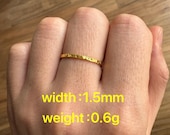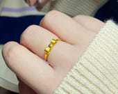 5 out of 5 starsSolid 24K pure gold, ≈0.5g wt size 9 - This classic ring quietly shows this gorgeous, deep golden hue only 24k is able give. Perfect item