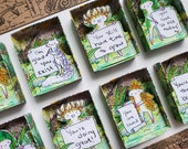 I first started painting my Spriggans in 2013. I've always wanted to make art that is cheerful and beautiful, that lifts your spirits to see every day. I love getting to explore my Spriggans' tiny lives and adventures, and if you choose to bring them home, I hope they bring you joy! ◕ ◡ ◕