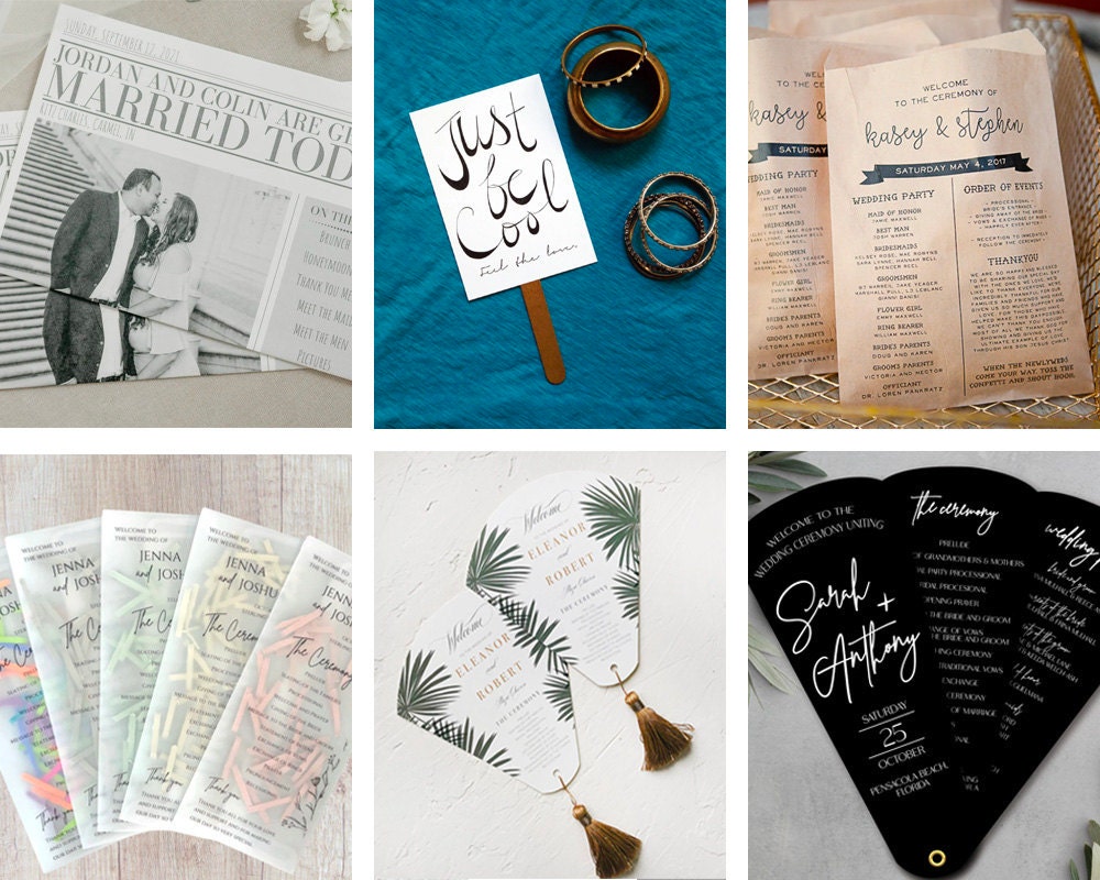 One way that couples are making their big day as memorable and meaningful as possible is by creating out-of-the-box wedding programs that go way beyond just providing their guests with an itinerary of the day (or multi-event wedding weekend). On Etsy, there has been a 127% increase in searches for newspaper wedding programs*, a 13% increase in searches on Etsy for wedding program books* and a 7% increase in searches for book or magazine programs*. These elaborate, often editorial-style programs set the tone for the festivities ahead, and can be personalized with the couples’ favorite photos, stories and memories, offering guests a fun and personal memento of the big day that can serve as a keepsake for friends and family.