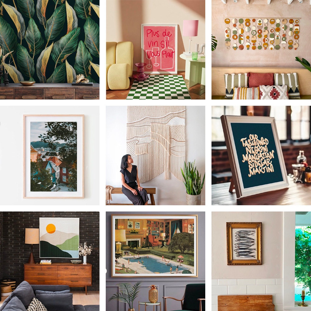 While the gallery wall has been a staple in home design for years (and will always have its fair share of loyal devotees), next year, many shoppers are eager to embrace more creative and unexpected art displays. In fact, we’re already seeing a 16% decrease in searches for gallery wall items*. Instead, shoppers are showing that there’s more than one way to make an impact with art, whether that’s choosing one large framed art piece (searches up 25%*), mini prints (searches have more than doubled*) paired with white space, leaning artwork against a wall instead of hanging it, or thinking outside the frame altogether with bold patterned wallpaper or large-scale tapestries.