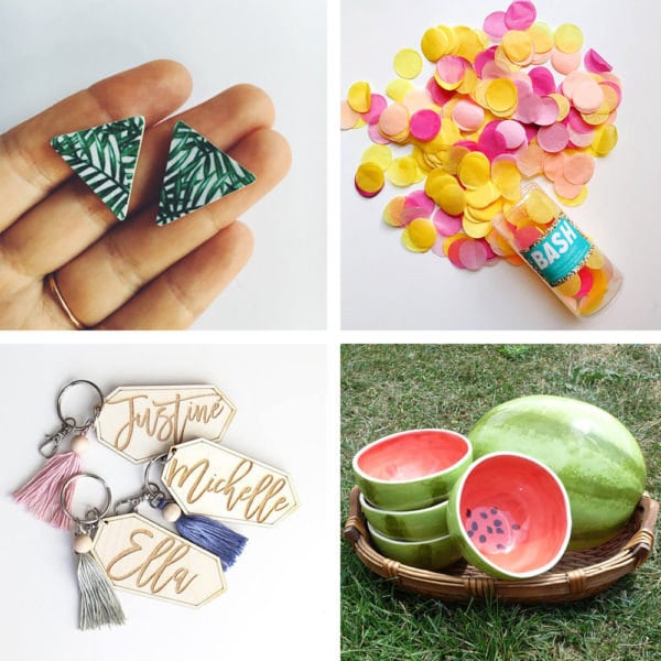 Palm Print Stud Earrings , Tissue Paper Confetti, Personalized Keychain, Watermelon Bowls