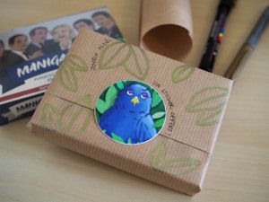 Set van 4 kleurrijke en getekende stickers - Stickers katten of vogels aan te bieden voor Kerstmis