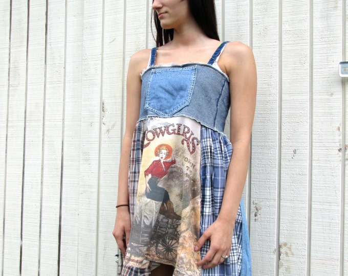 xsmall - large / Cowgirl / Upcycled clothing / Funky Denim Jumper Tunic / Shirt / Eco Dress / Denim Artsy Dress by CreoleSha
