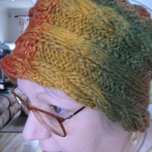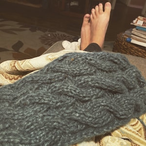 This headband / ear warmer is a quick and easy knit. It only requires 95 yards of worsted weight yarn and a size 8 16-inch circular needle.