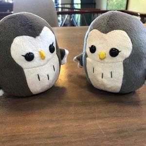 Pygmy Owls are adorable little squishy bundles of cuteness! With their cuddly round bodies and heart-shaped faces, there’s plenty to love. Measuring a handheld size of 4.5” tall and 6.5" wide, it's precious to handle. To be sewn from soft fleece or minky fabric, these sweet owlets make wonderful desk companions, thoughtful gifts, or tea party attendees. (A pair of two owls make a cute gift for couples!)