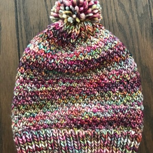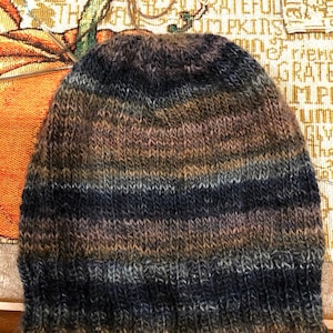 This is a fun hat to knit and to wear! It's knitted flat, in one piece (no seams!) on straight needles. Unlike many ponytail hats that have only one spot for the ponytail, this hat's button band allows you to position your ponytail/messy bun high, low, or in between. Just undo one button for your ponytail, or undo two buttons for a messy bun.