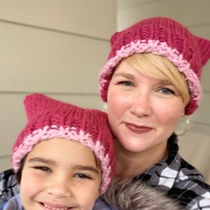 The pattern includes instructions for knitting hat in both childrens' and adult womens' sizes.