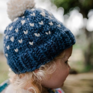 Tinker Creek Handknits' knitting pattern for a trendy, fair-isle style bun hat for your favorite girl!
