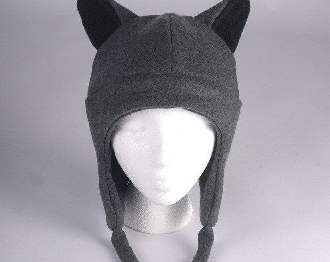Fleecemuts Wolf - grijze Aviator stijl Mens Womens Teen Wolf hoed door Ningen hoofddeksels