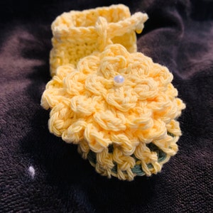 These little sandals work great for boys and girls and you can make them super girly by adding the flower. ( Instructions for flower and attaching flower are included in the pattern! ) They work up fast and you can completly change the look of them by having fun with the colors you choose.