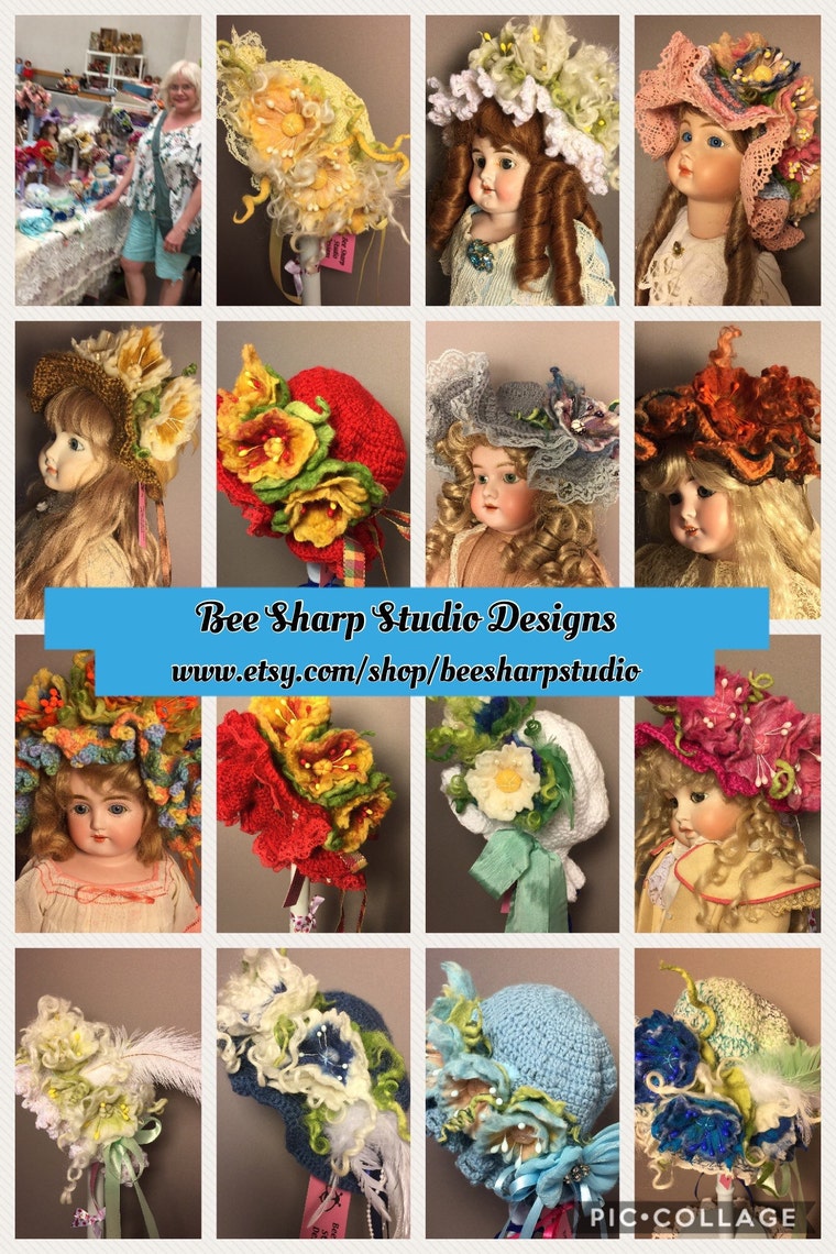 Hi, my name is Melanie Thornburg and I have been a part of the Etsy collection of shops for 6 years. I am an artist of 30+ years and an avid collector of all things vintage and antique. I specifically love dolls and anything doll related and have been an avid collector of Blythes, BJDs, Effanbees, and German bisques and artist dolls for years. I love to make hats, shoes, clothing and jewelry for my own dollies and love to share my designs with other collectors. I recently combined my creations to create one of a kind unique cloth dolls that are collector approved each assembled by hand and dressed uniquely with hand made clothing designed by me. My hat, sweater and jewelry designs are unique and one of kind hand made and assembled in my home studio. I love to felt my floral design embellishments, and assemble my jewelry which come from ideas I get from my own gardens and the gardens of my childhood. I lovingly crochet each hat and sweater and hand felt all my floral embellishments. I add lace, ribbon and other embellishments to create individuality in each design. I artfully assemble jewelry into pins snd clips and dangles for hats,scarves , bags and more. It is so fun to use color in unique ways to enhance my accessory designs. My hats are made to enhance the doll and teddy collection and to give collectors more eye candy to enjoy! I have just recently added jewelry designs and cloth doll designs for you or your collections. I hope you enjoy your visit to my shop and I hope that your purchase will give you many years of enjoyment as a part of your personal, doll or teddy trousseau. Happy shopping.