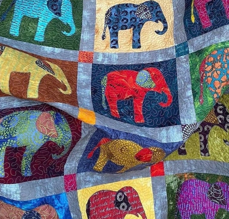Elephant Parade: A colorful batik quilt. One of my favorite quilts! -