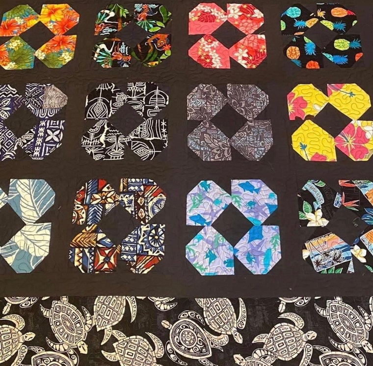 Hawaiian Flowers: Fabrics bought back from Hawaii. Oops.. suitcase overload.