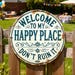 All of our signs are printed by us in Houston, TX they are made of heavy gauge UV resistant aluminum. The images are printed onto the aluminum, and are weatherproof. Any rust or scratch marks is part of the design and not actual rust. All signs will come with 2 predrilled holes for easy hanging.
