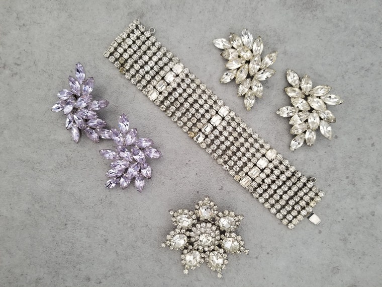 My favorite antique and vintage pieces to collect are silver-plated trays, rhinestone jewelry, and Mid-Century barware.