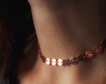 Rose Gold Coin Choker Custom Necklace Rose Gold Small Circle Choker Chain Layering Necklace in Rosegold Disc Chain Boho Jewelry Beach