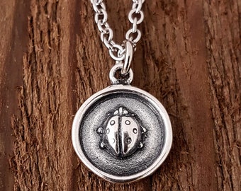 Lady Bug Charm Pendant Necklace - Personalized Ladybug - Personalized Text Custom - Multiple Chain Lengths Available