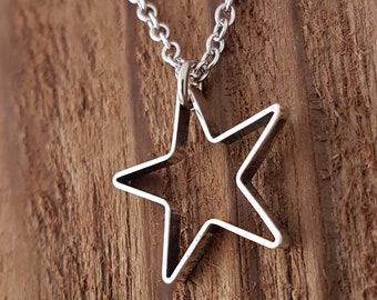 Silver Star Necklace, Simple Star Outline Necklace, Dainty Minimal Necklace, Geometric Layering Necklace in Sterling Silver