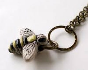 Handpainted Flying Honey Bumble Bee Charm Necklace - by Gwen DELICIOUS Jewelry Design