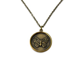 Butterfly Jewelry Bronze Butterfly Wax Seal Necklace Personalized Charm Custom Personalised Text Gwen Delicious