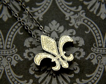 Silver Fleur De Lis Pendant Necklace Solid White Bronze with Sterling Silver Overlay