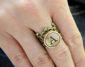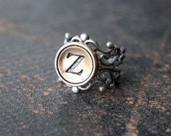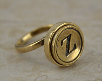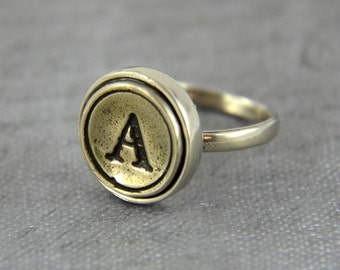 Typewriter Key Ring - Personalized Typewriter Key Ring - Solid White Bronze- Silver Initial Ring Letter Ring - All Letters Available