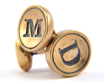 Personalised Wedding Gift Cuff Links - Custom Typewriter Key Cufflinks - Hand Made Solid Cast Bronze - All Letters Available