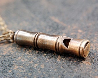 Whistle Necklace - Brass Miniature Bamboo Whistle Pendant Necklace -- Steam Punk -by Gwen DELICIOUS Jewelry Design