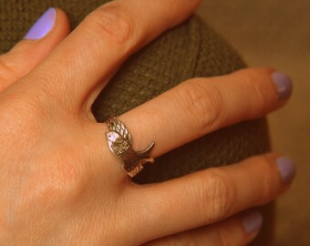 Swallow Adjustable Ring - Sparrow Sterling Silver White Bronze -Silver Bird Ring - Animal Jewelry